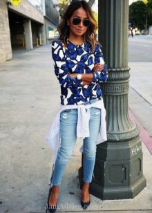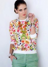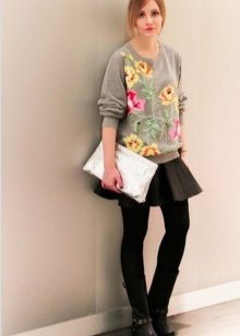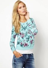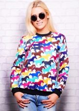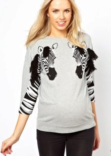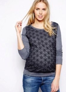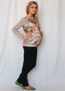 The range of sweatshirts for pregnant and lactating mothers is not limited to plain models. Floral prints are popular, because they emphasize the femininity of the image. Sweatshirts are also convenient because they can be worn with any other convenient clothes, be it trousers or skirts, and the combination with flat shoes or sneakers is completely stylish.