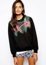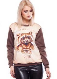 Most of all creativity and imagination is shown by fashion designers when decorating sweatshirts. Sports style has faded into the background, giving way to a pedestal of motley and luxury. Sweatshirts are not only famous for prints.
