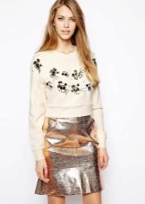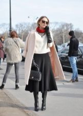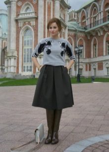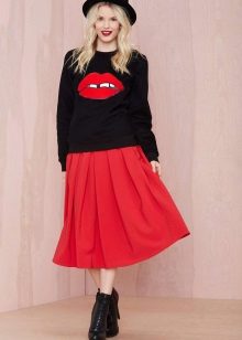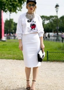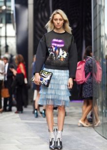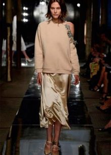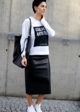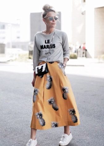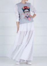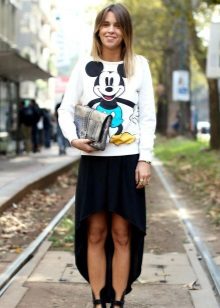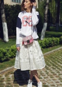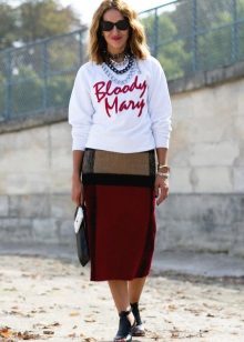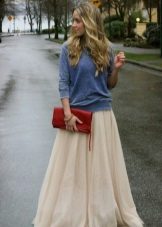 With a long skirt: a long skirt and a well-chosen sweatshirt can look in the kit both elegantly for the evening and everyday comfortably. The main thing is to complement the kit with suitable shoes and accessories.