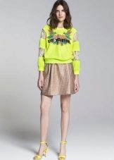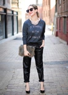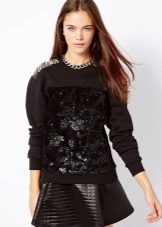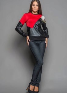 A separate place in the decoration of sweatshirts is decoration from other fabrics. Leather sleeves have become an integral part of many brands. They are mainly used for models of calmer gray or dark tones, but often they have bright and interesting prints. Thanks to the skin, the sweatshirt immediately plays with new colors, it adds audacity to the image.