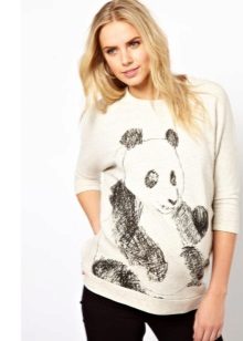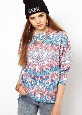 Sweatshirt has enough features. His coat is loose, and he is sewn from knitwear, which is insulated for autumn and winter models. The neckline of the sweatshirts is round, and underneath there is always an insert of a wide elastic band of v-shape. Like regular sweaters, this variation has no fasteners. Raglan sleeves.