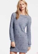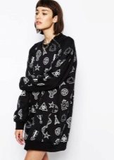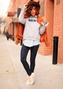 Custom style: the sweatshirt dress acts as an independent bow, do not forget the high boots or boots. A crop sweatshirt will be unusual to watch complete with a jacket.