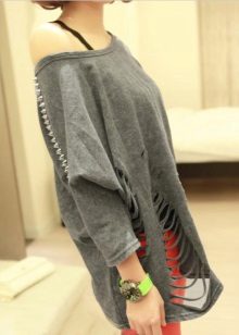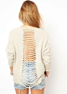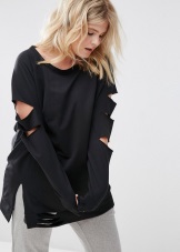 In this season, cropped and cropped sweatshirts, with cuts at the bottom or asymmetric corners in style, came into fashion. Popular models with collars, hoods and atypical necks. The fashion for "tearing" passed from jeans to the top of the image: purposely made puffs, torn stripes, real holes, and the most stylish of them - with uniform cuts along the entire length of the back.