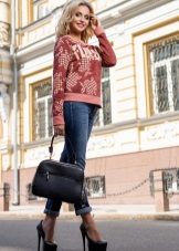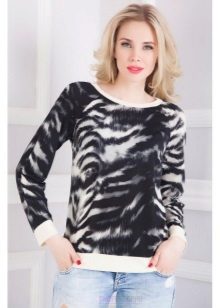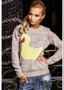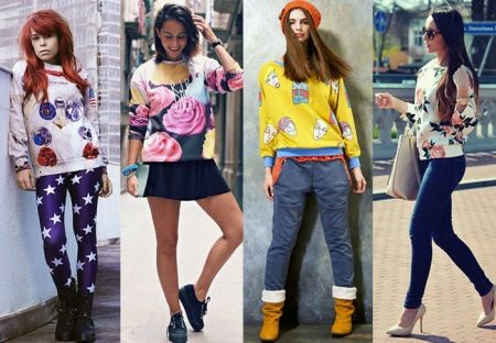 The most common are plain sweatshirts. The classic fabric print is replaced with knitted patterns, which looks no less interesting. There is also a different style of knitting, which affects the pattern of the fabric, due to which the originality of the sweater is achieved.