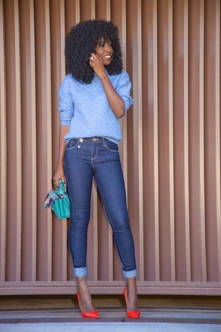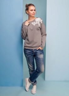 A classic with a twist: a sweatshirt and jeans are a classic.