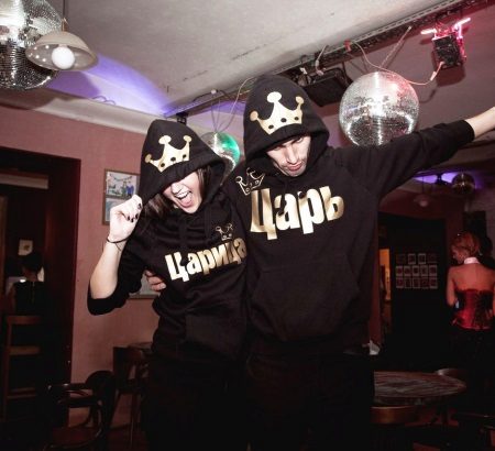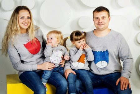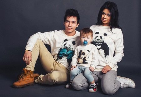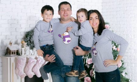 Most often, such sweatshirts are two copies of the same style and color, but of different sizes for mom and daughter or dad and son. There are options for a small crowd of three or more people. These things will be done in a single style, match in color, and differ in inscriptions or drawings, united by a single theme.
