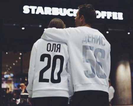 Exclusive lovers can order sweatshirts with their names and favorite numbers, in the style of a sports uniform.