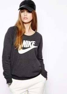 Despite the fact that Nike sweatshirts have a clear sporty character, they can be successfully combined with casual-style clothes, and even try to be introduced into more elegant looks.