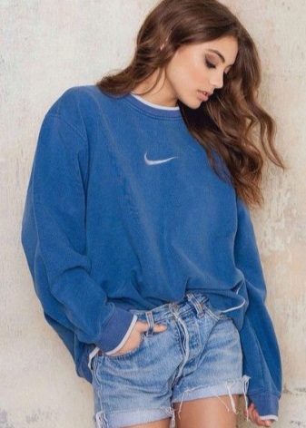 In summer, you can wear a sweatshirt with short jeans shorts, especially this kit is suitable for evening walks.