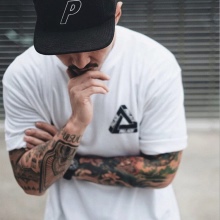 The founder of Palace Skateboards Lev Tenzhu himself is directly involved in creating new models, occasionally resorting to tattooing - master Fergus Purcella.