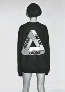 Designers disagree about what it is worth wearing sweatshirts with. Initially, many models of “Palace Skateboards” were created for men, but in reality they are unisex and are loved by girls.
