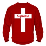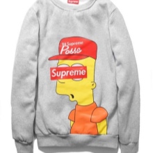 Sweatshirts along with hoodies and T-shirts are the best-selling Supreme brand items. Often they have a flashy design or, conversely, aesthetically concise. The cost of clothing is quite high, due to belonging to a cult brand. Cotton fabrics and fleece are used for sewing sweatshirts.