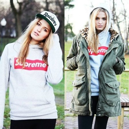 Supreme sweatshirts are aimed at a specific audience of consumers: youth who are passionate about hip-hop and street subcultures. Therefore, the products have a deliberately simple, without frills style. Sports loose fit, elongated models.
