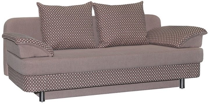 This type of upholstered furniture is suitable for placement in the bedroom as well as in the guest room. In the daytime, you can just relax on it and watch TV, and in the evening - use it as a full bed. This model has a soft headboard and armrest.