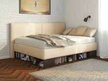 Actual models with a large drawer that opens with a lifting mechanism. The ottoman of the Russian company Ormatek under the name Lancaster can be used as a full bed. The wooden base is very reliable. There is only one side back. Drawer boxes are absent, while in the lower part there are open niches designed to store various things. Consumers can choose a model in their favorite color, there are 42 in total.