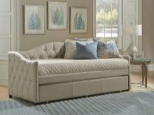 The sliding ottoman can be installed both in the bedroom and in the nursery. Angle models are also available. When folded, the ottoman is quite compact, but it decomposes into a full single or double bed for sleeping. The base can be made of various materials, chipboard and wood are often used. An example is the Ikea Hemnes model. It has drawer boxes in the amount of three pieces and 3 wooden backs. Length can reach 207 cm.