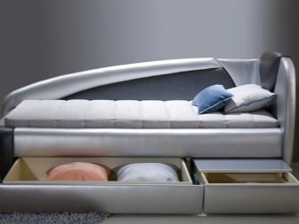 Boxes for linen are present in almost all models. However, the difference in location: in some cases, getting to them will be quite easy, in others this action will require effort. In many products, such compartments are located under the upper part, which has considerable weight, and it is not easy to lift it. It is much more convenient when the design is equipped with a special mechanism that can hold the surface at the top.
