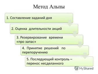 As mentioned above, the Alps method will help you to efficiently distribute your time: both working and personal. But before this happens, you need to carefully study the formula proposed by the German. This process, as the author himself admits, is not the easiest to study. However, the time spent on its development will more than pay off. Having spent no more than 15 minutes in the morning, you can distribute the remaining seconds, hours and minutes with the greatest benefit for yourself.