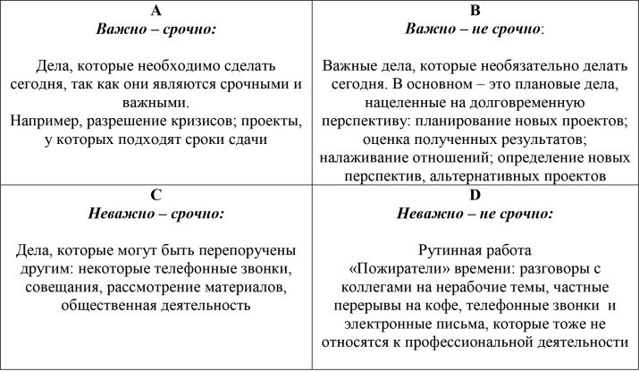 As a result, he developed a certain algorithm of actions, adhering to which even the most busy person will find time for a cup of coffee in his schedule and not only. Here it is important to initially separate the “grains from the chaff”, that is, prioritize the tasks set for the day. For this, it is necessary to determine the urgency of their implementation, the degree of importance, the complexity of a particular process. So, first things first.