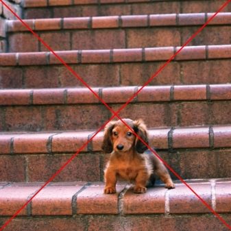 As babies, pets are protected from access to the stairs. It would be better to bear the dog in his arms. Puppies are not taken for scruff, as this method of transferring the baby can provoke a displacement of the vertebral discs.
