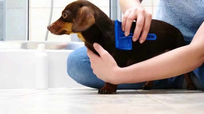 The home mini-dachshund is unpretentious in leaving. Pet coat must be cleaned weekly with a brush with natural hair. For long-haired dachshunds, a furminator is used - a special brush that avoids the formation of tangles, accelerating the molting process. During the molting period, the dog’s hair is combed every day.