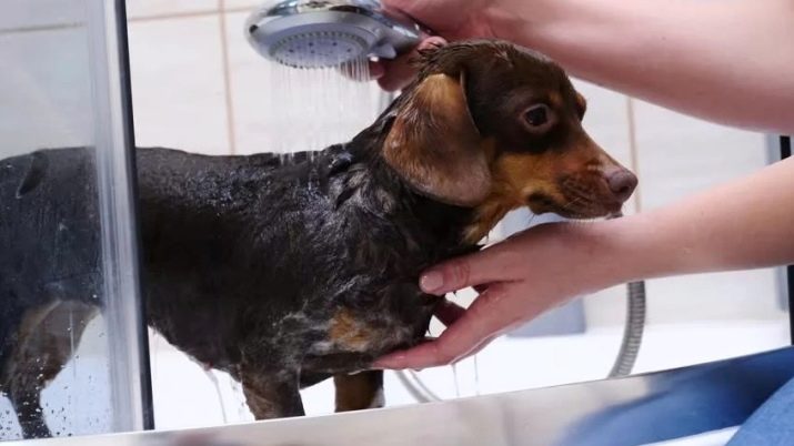 Water treatments are performed once a season. The animal itself is clean, avoids dirt. Dogs love water, they enjoy swimming on their own in open water.