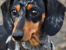 Very often puppies with blue eyes are born in the litter of marble dogs. This is due to a gene mutation. And also there are odd-eyed dachshunds, in which one eye is blue and the other is brown. The blue-eyed marble dachshund is highly decorative. The coat of such a dog almost always has a black-red color with a gray tint; dark-marble or coffee-marble tones are highly valued. Light brown or gray spots distributed throughout the body have different shapes.