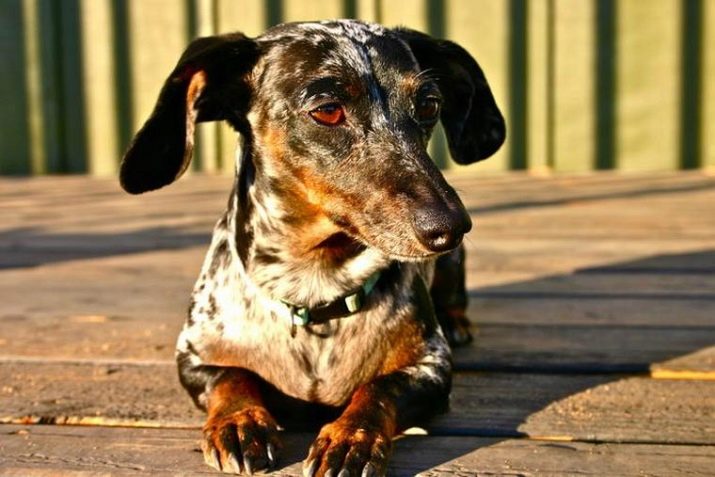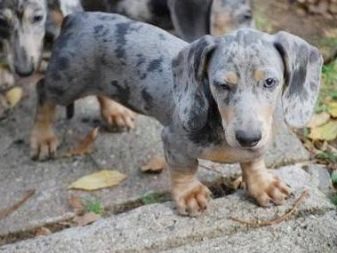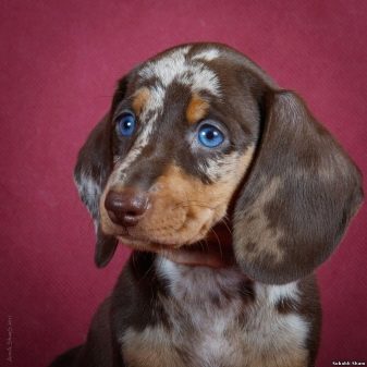 For breeding puppies of marble colors a prerequisite is that one of the crossed individuals should have a standard color. The marble dachshund gene dominates the genes of other species, which provides marble offspring. Unfortunately, breeding marbled rocks has its own risk. It is associated with a mutation of the marbling gene, which can adversely affect the organs of vision and hearing of the animal.