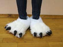 Made almost like real soft toys, they were originally created as children's shoes, but were loved by many adults and became a kind of home fashion. Slippers in the form of animals at one time it was decided to purchase as a gift to relatives and even colleagues. Walking around the house all day in such slippers is not very convenient, but in order to get out of bed or sofa for a short while and return there again, they are very suitable. Such slippers can be in the form of animal clawed paws.