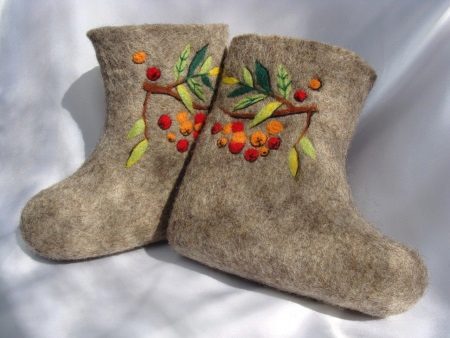 On the streets, especially urban ones, felt boots can now be seen quite rarely, but now they become more and more popular as home shoes. And this is not surprising, because nothing warms so well as things made from natural wool. In addition, decorated with embroidery, pattern and other elements, felt boots look beautiful, original and original. It is easy enough to look after them - these house boots made of wool are washable.