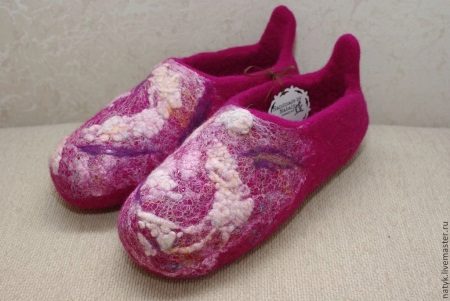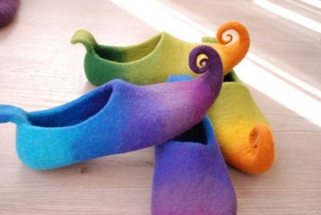 They were always in use, but now they are at the peak of popularity. There may be almost all of the above models. Their peculiarity is in the manufacturing method (manually) and in the materials and techniques used. Usually these are natural or mixed materials, such slippers are made by felting or knitted from yarn. Accordingly, such slippers can be: