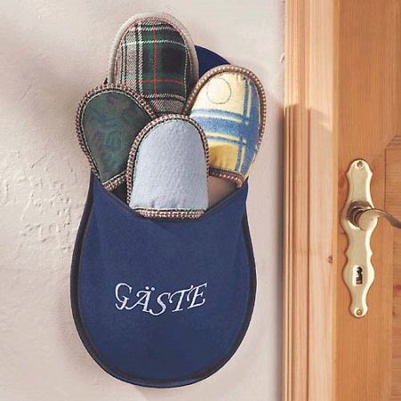 Home slippers should be stored separately from street shoes. Each member of the family should have their own pair of slippers. For guests it is worthwhile to purchase special replacement shoes. The place where the shoes are folded should be kept clean.