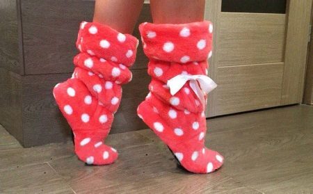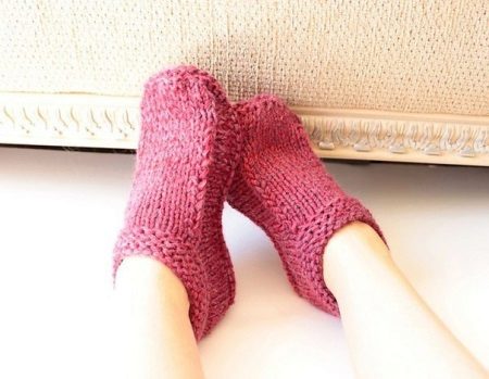 Reminiscent of ordinary socks, but have a reinforced compacted sole. They are different in length: as short as footprints and as long as golfs. Such slippers are often made by hand, for example, knitted from warm yarn.
