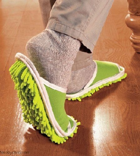 The sole of such slippers is made of microfiber and allows for dry cleaning of the premises in the easiest and most inconspicuous way - as a result of walking. Then the slippers are washed and dried - and they are again ready for use.