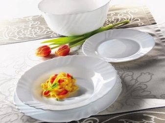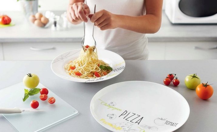 New models of spaghetti plates began to be produced from glass ceramics. They are easily combined with a variety of dishes and do not contrast with the home interior, as they are almost always available in black and white.