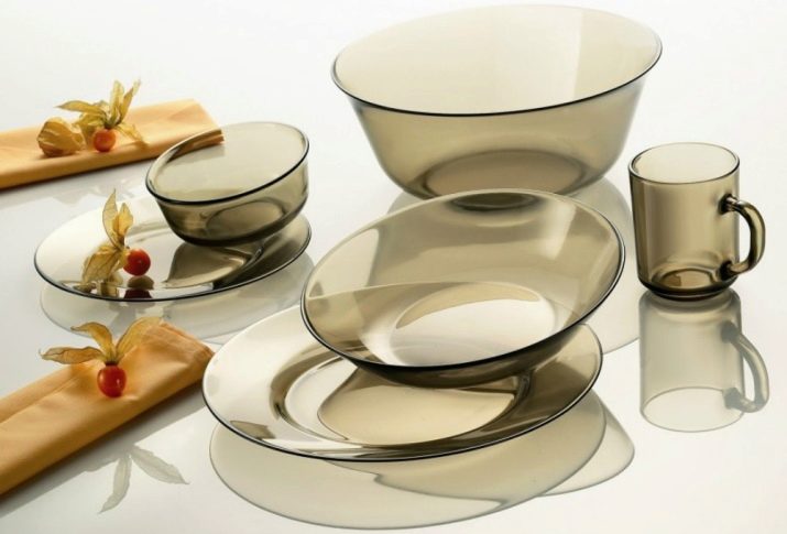 - Glass. On the table, glassware looks stylish and modern. You can buy plates of any volume and diameter, deep (250 ml) and saucers. The decorative side involves a modest option (just a transparent plate without a picture) and various shades of glass, drawings, plots, ornaments, structures.