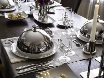 This is the plate cover used during table setting. It resembles a hemisphere in appearance. It is often possible to observe how restaurants serve dishes under such a flush, but today this attribute is not uncommon in home cooking. Its main purpose of application is to nicely serve hot snacks on the table, while maintaining the temperature of the dish and preventing chapping. Also, the ram makes it possible to keep the dish in its original form for a long time. The dish is simply covered with a lid and removed at the right time.