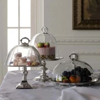 There are kits for sale, the components of which are a plate and a cloche. Lids can also be purchased separately or on a wooden stand. They can be the most diverse in both form and material of manufacture.
