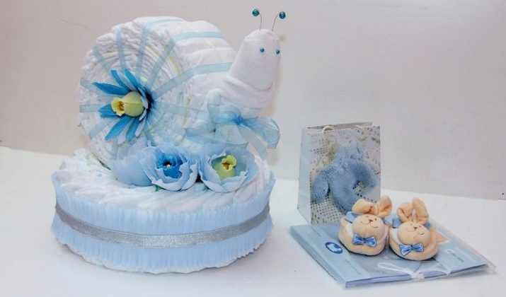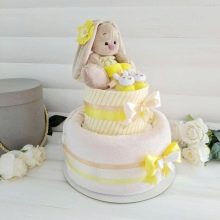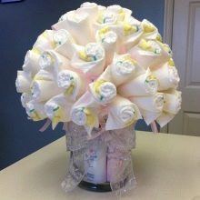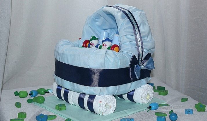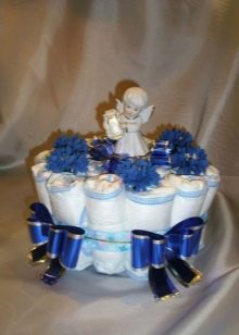 The most popular and beautiful item that can be made from diapers is a cake. It gives a lot of opportunities for decoration, while it looks like a large-scale and incredibly attractive gift.