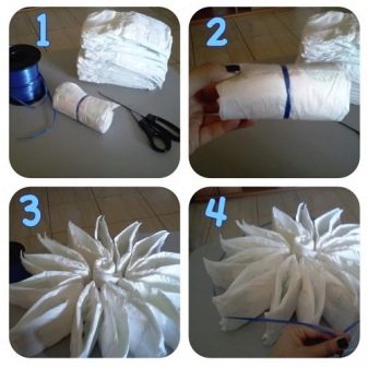 Using such techniques, you can make a variety of designs from diapers, and make their design original.