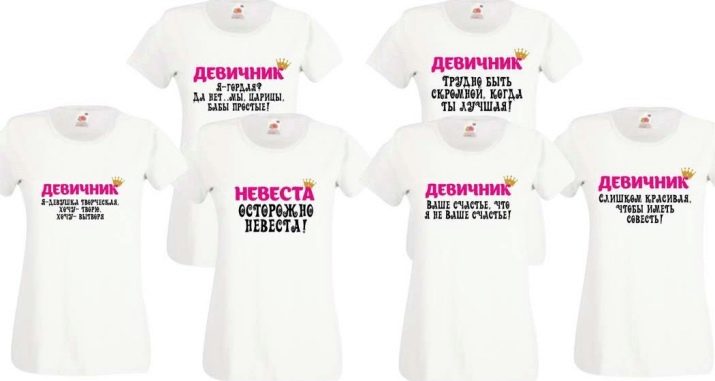 - Classic version - clothes with funny inscriptions. The bride can wear a T-shirt with the words “Farewell to freedom” or “I'm going to marry, don’t wait back” right at the party (if she goes home).