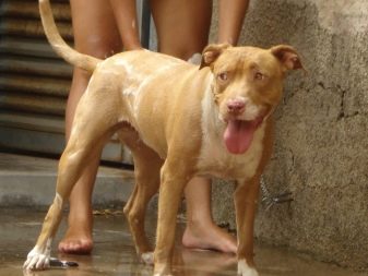 - A thoroughbred dog will need to be bathed using a special shampoo (The usual options released for humans, the pit bull will not work).Instead of shampoo, it is permissible to use baby soap - it will not harm the pet. Such procedures are usually carried out once a year.