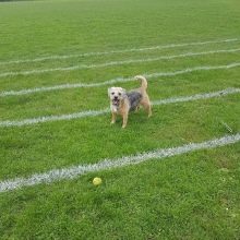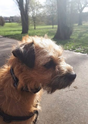 Border terriers can not be attributed to the avid couch potatoes who prefer to spend days on the couch. They are looking for any reason to go for a walk. Dogs of this breed love to be close to their owner, but at the same time they are not inclined to impose themselves. It’s very difficult for such dogs to endure loneliness, therefore the content on the chain is not suitable for them. If a pet is left without attention and communication with households for a long time, it will not only become very bored, but also turn into an evil animal.