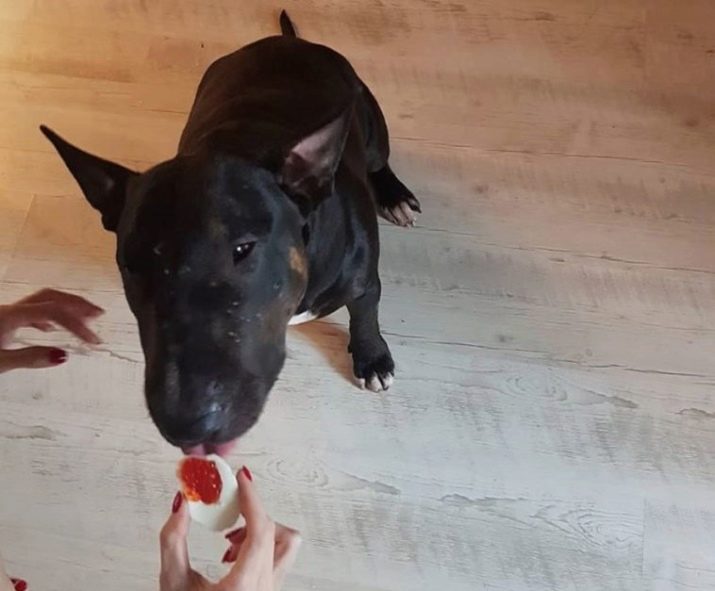 The diet of the bull terrier must be balanced and rich in vitamins and minerals. Dry food should be selected by a specialist based on the height and weight of the dog.