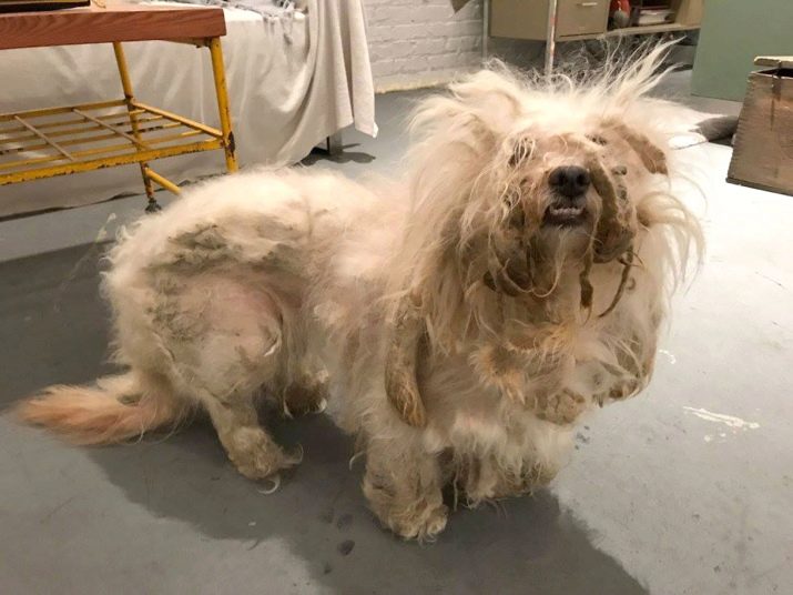 - previously the dog is washed with shampoo, in places where the wool has managed to fall off, it is disassembled by hand into strands, using special oil or lotion;