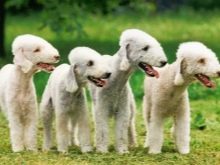 The exterior features of these small dogs: a small head and a short flattened muzzle, covered with a dense woolen coat near the beard, eyebrows and cheekbones, a small and delicate body, a lightweight skeleton, the back is straight, like limbs. In relation to the size of the head, these dogs have rather large erect ears.