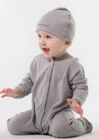 Choosing options for a one and a half year old baby, it is worth taking a closer look at cotton products. In 2-3 years, you can wear not only cotton, but also fleece clothes. For 5 years or more, you can wear products made of polypropylene, polyester and other synthetics with the addition of cotton fibers or wool. Options for winter walks should be made of mixed fibers with a predominance of wool.