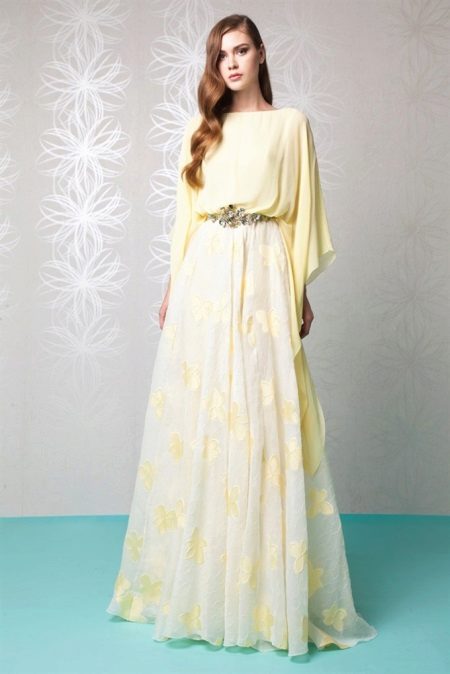 Their crepe de chine can sew an outfit of any style, but models with flowing skirts look the most successful. It can be either smooth satin crepe or chiffon air crepe. As decorative elements, rhinestones, embroidery, lace and so on are used.