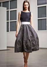 Due to the fact that today a combination of different textures is in fashion, a jacquard dress in combination with satin finish will be very welcome. It can be a dense jacquard skirt in combination with a light top, which will soon have all the flaws in the girls, even with a full figure. Owners of a slender silhouette will suit a skirt-year with asymmetric accents.