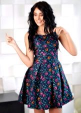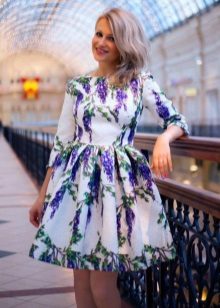 The jacquard mini dress with a sun skirt looks great. It is suitable for a party, a walk or even a business meeting.The style allows you to hide the full hips, highlight the waist and emphasize the femininity of the figure.